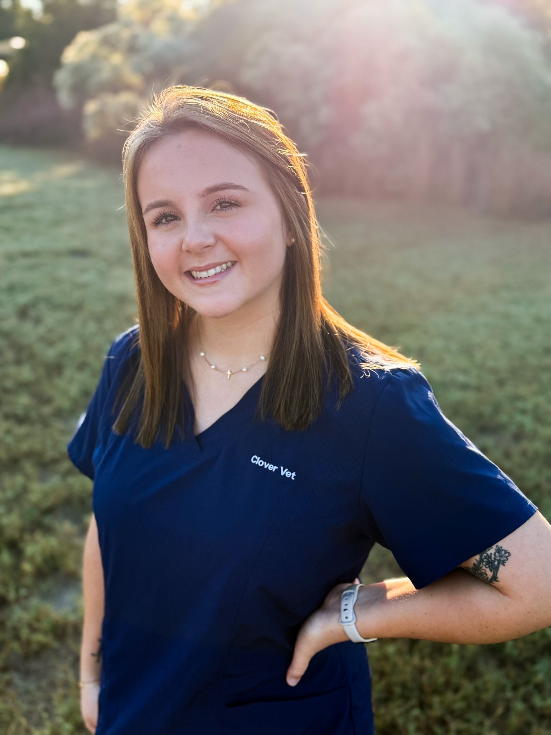 Hey, I’m Elisabeth! I’ve been working in the vet field since 2020 and have wanted to work with animals for as long as I can remember. I’ve lived in Clover my whole life where I grew up on my family’s farm.